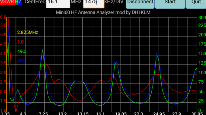 To show Bob what is actually possible from the chameleon hybrid micro, I’ve set it up at 10 metres height, in a sloping configuration. Then I tested the SWR on each band between 160 and 10 meters to simply see what’s putting a little effort into my configuration could achieve. These are my results