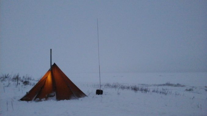 Just in case you havn’t seen my latest video, I’m posting it here along with my field notes on the blog. In this video I take the all-weather solar powered field station out for winter deployment at 65 degrees North. I’ll take you through the entire process, hiking to location using a pulk sled, setting up the shelter and wood stove, setting up antennas, radio, and computer so that we can operate SSB and digital modes on 40, 30, 20, and 17 m.