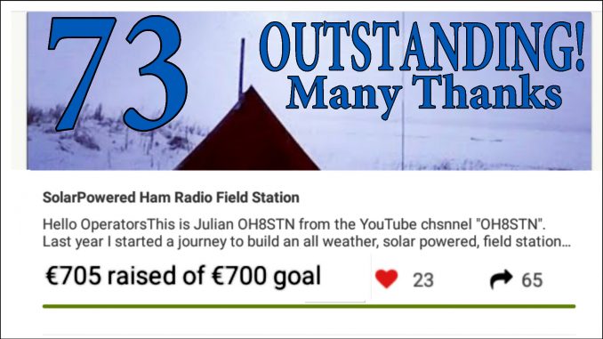 Many thanks to everyone who contributed, in whatever way they could. it’s always pretty awful trying to raise money, and I definitely won’t make a habit of it. If all goes well, this rig and the field station, will take us forward another three to four years with the channel. Finally, when we reach the campaign goal, I’ll make an outline of everything we’re going to accomplish during 2018 with the solar powered Field Station.