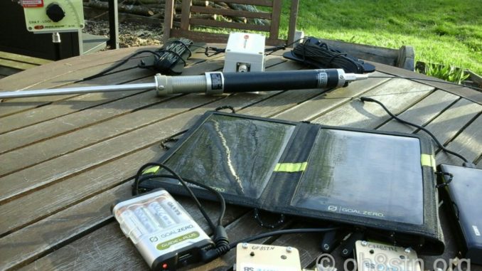 The Goal Zero Guide 10 worked out to be a nice companion for the WSPRLite. The stand-by current draw of the WSPRLite is 0.05A and 0.14A on TX. This means actually The Nomad 7 solar panel could power the WSPRLite itself, provided it was always in full sunlight. Unfortunately the Earth and Sun are moving targets. That’s where the small battery pack comes in.