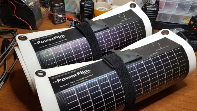 - 2x 20w FM16-1200 – The 20 watt PF panels are the core of my qrp or low-power, man-portable ops. These panels are also good for light rain, snow, and most things we can throw at them.