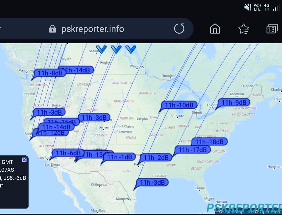 Most of my tests have been well below freezing temps. With today’s warmer temps, extra 5 watts and longer transmissions, the Packtenna EFHW had no chance.