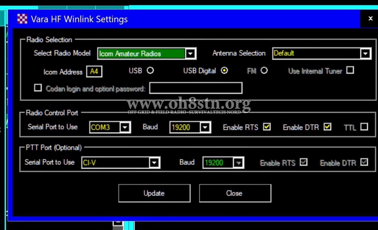I suspect the push-to-talk port is what’s making most of you pull your hair out. It’s unlike any of the others Xiegu radios. Simply select CI-V, 19200 Baud with RTS & DTR selected. Finally, click update and you’re on your way.